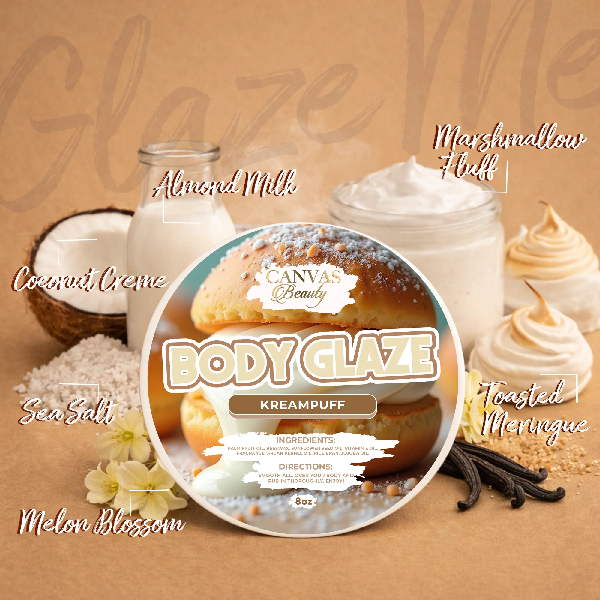 Body Glaze is loaded with significant benefits. This organic anti-aging formula is packed with antioxidants thanks to the star ingredient PALM FRUIT OIL. It leaves skin soft and glossy without being greasy. It tightens the skin and prevents sagging and wrinkling. Once you’ve been glazed you’ll never want to be dry again. It’s the ultimate icing for your skin. The texture is creamy and silky. It melts in your hand just like a soft marshmallow melts in your mouth.