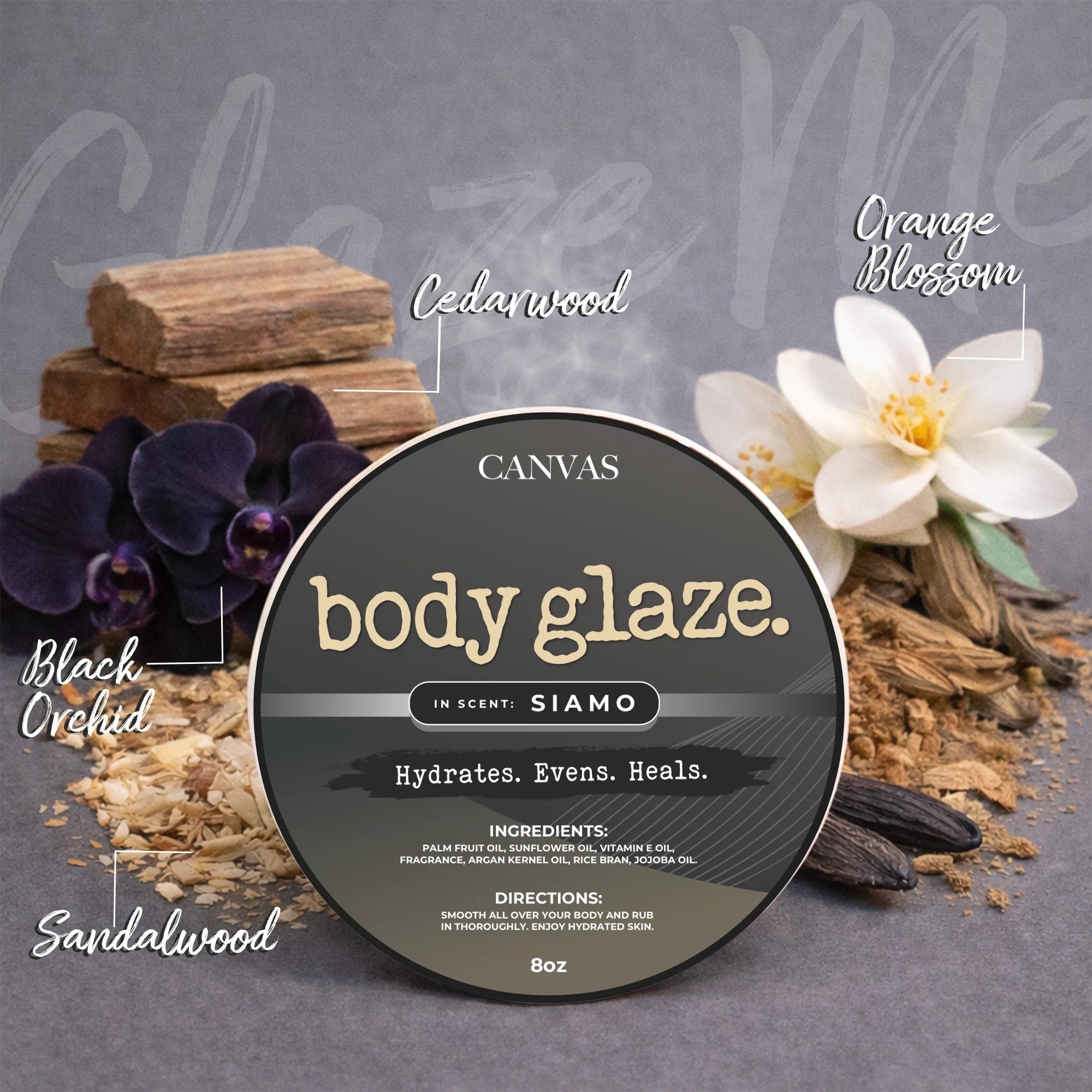 Introducing SIAMO Body Glaze, our newest Body Glaze designed with the men in our lives in mind. With a light but sophisticated scent based on all of our mans' favorite cologne. Let the men in your life unleash the power of self-care and let them indulge in the luxurious embrace of our expertly crafted formula, designed exclusively for the modern man who demands the best.